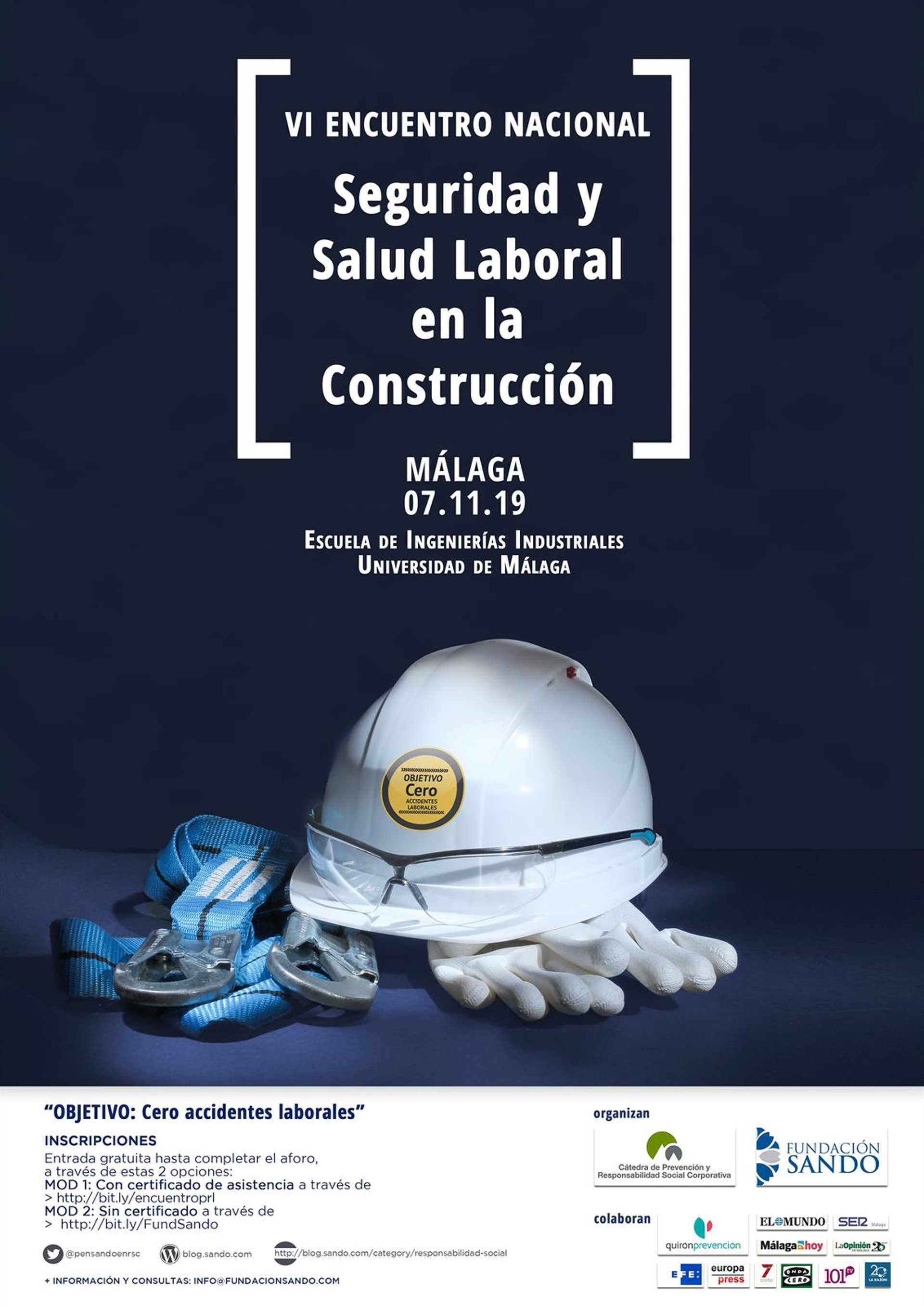 Fundación Sando celebrará, en colaboración con la Cátedra de Prevención y Responsabilidad Social Corporativa, el VI Encuentro Nacional de Seguridad y Salud en la Construcción el próximo 7 de noviembre en la Escuela de Ingenierías Industriales de la Universidad de Málaga (UMA).