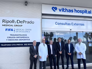 Ripoll y De Prado Medical Group cuenta con la acreditación FIFA, "lo que lo sitúa en la élite de traumatología y medicina deportiva, y con algunos de los especialistas más prestigiosos del mundo en cirugía ortopédica y traumatología como los doctores Ripoll, De Prado, Van Dijk, Lempainen, que están especializados en las articulaciones y a los que se remitirán las cirugías de las patologías de cada paciente y realizarán las intervenciones correspondientes en el Hospital Vithas Xanit Estepona", han detallado.