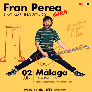 Cartel del concierto de la gira 'Uno más uno son 20' de Fran Perea en Málaga. - ORGANIZACIÓN