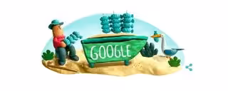 La imagen del 'doodle', elaborada de manera artesanal con arcilla, muestra a un hombre, con sombrero y bastón, elaborando un espeto de sardinas. Junto a él, una barca llena de espetos lleva escrita las letras de Google y una gaviota lo observa con una sardina en su pico.