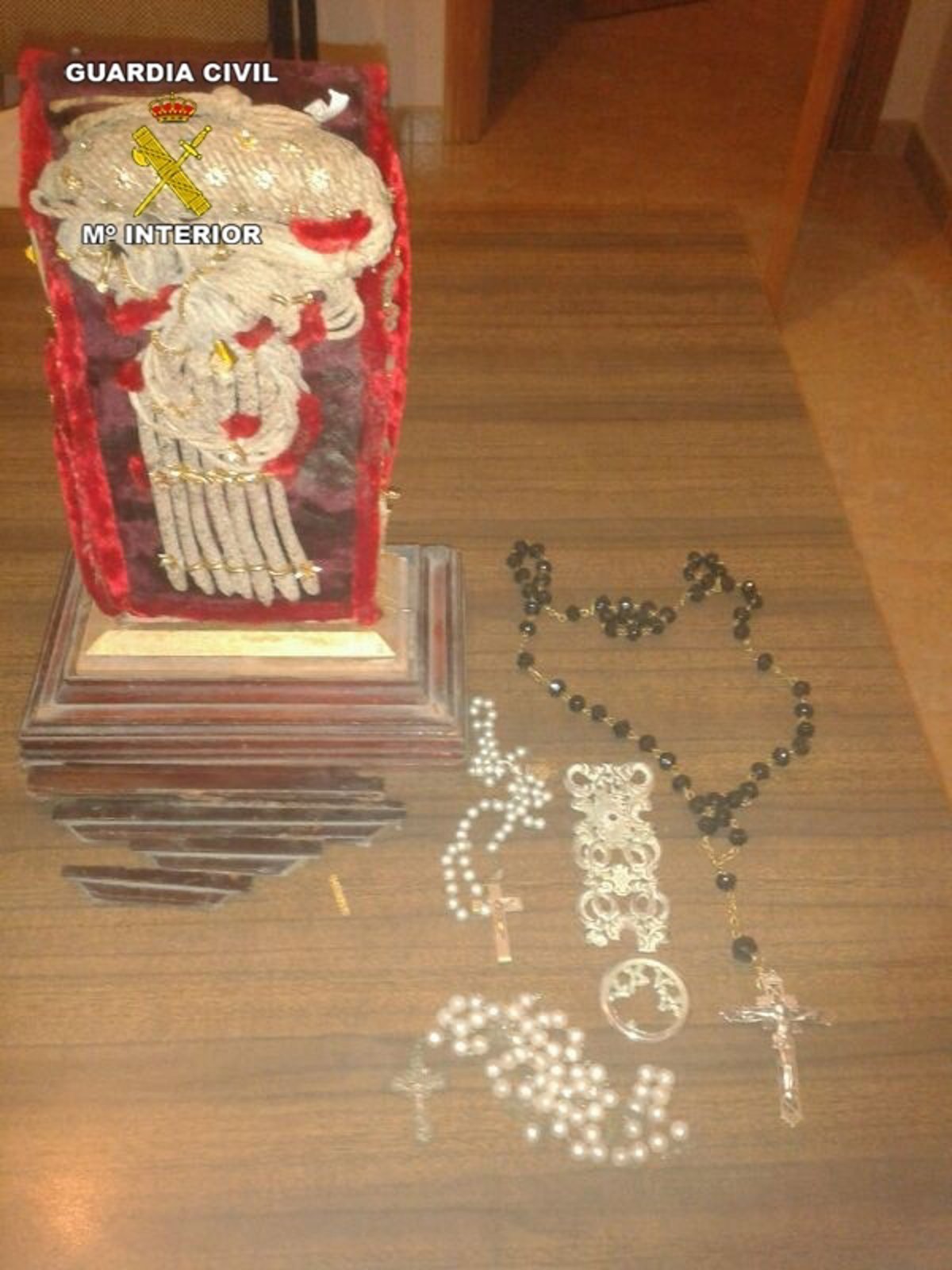En el primer robo, según ha informado la Guardia Civil en un comunicado, habían sustraído material electrónico, y en el segundo el relicario. Tras los hechos, y ante el temor de que la pieza pudiese ser vendida, los agentes establecieron un dispositivo que permitió localizar el mismo día del robo a los presuntos ladrones y recuperar todos los efectos robados, incluido el relicario.