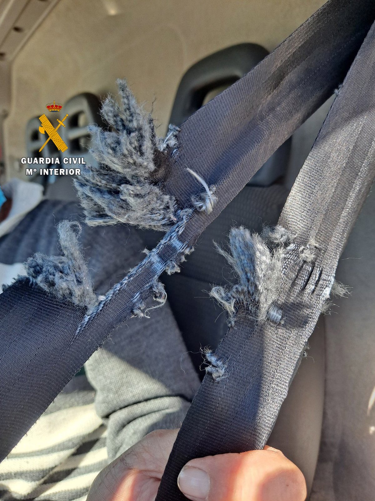 Cinturón de una furgoneta detectado en la inspección de la Guardia Civil de este tipo de vehículos - GUARDIA CIVIL