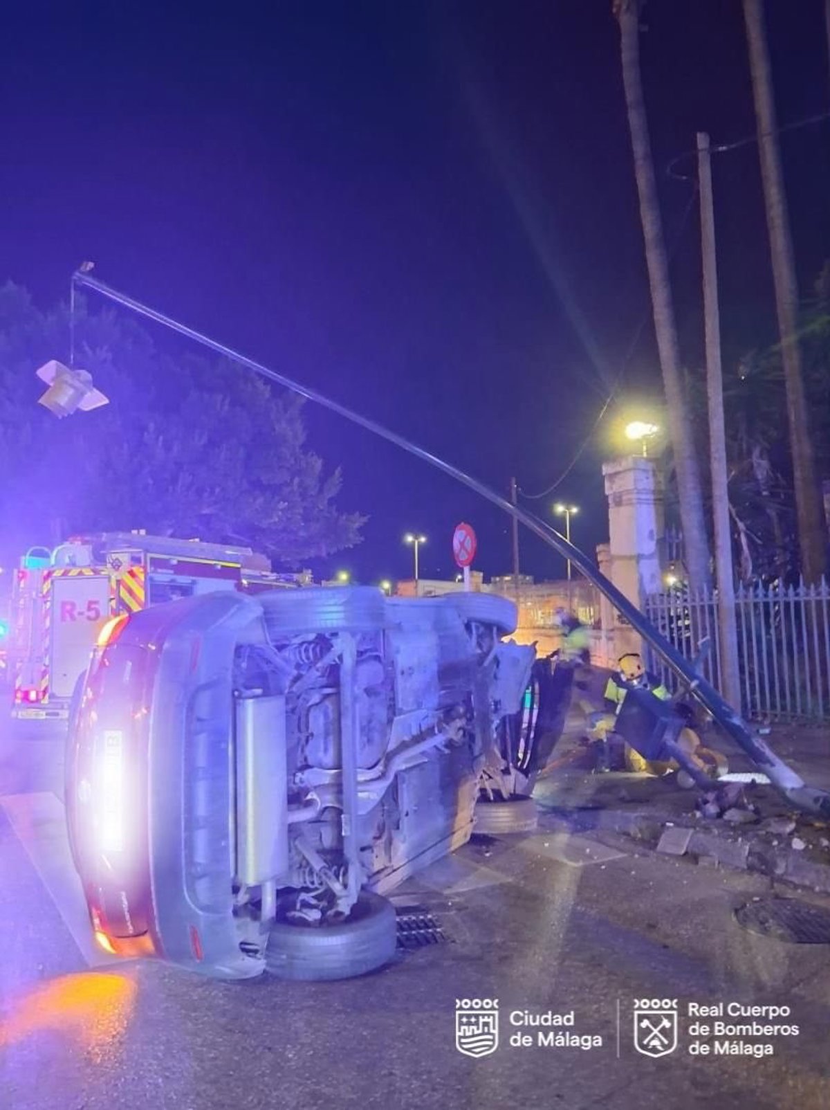 El accidente tuvo lugar en la noche de este pasado lunes en la avenida Manuel Agustín Heredia, a la altura de calle Córdoba, en el distrito Centro cuando, al parecer, el vehículo volcó como consecuencia del impacto con un semáforo.