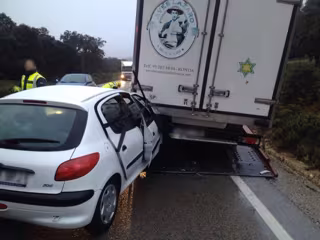 Al parecer, el vehículo se empotró por detrás contra la grúa, que llevaba cargado un camión. Los dos ocupantes del turismo han quedado atrapados, teniendo que ser extraídos por los bomberos por la puerta trasera.