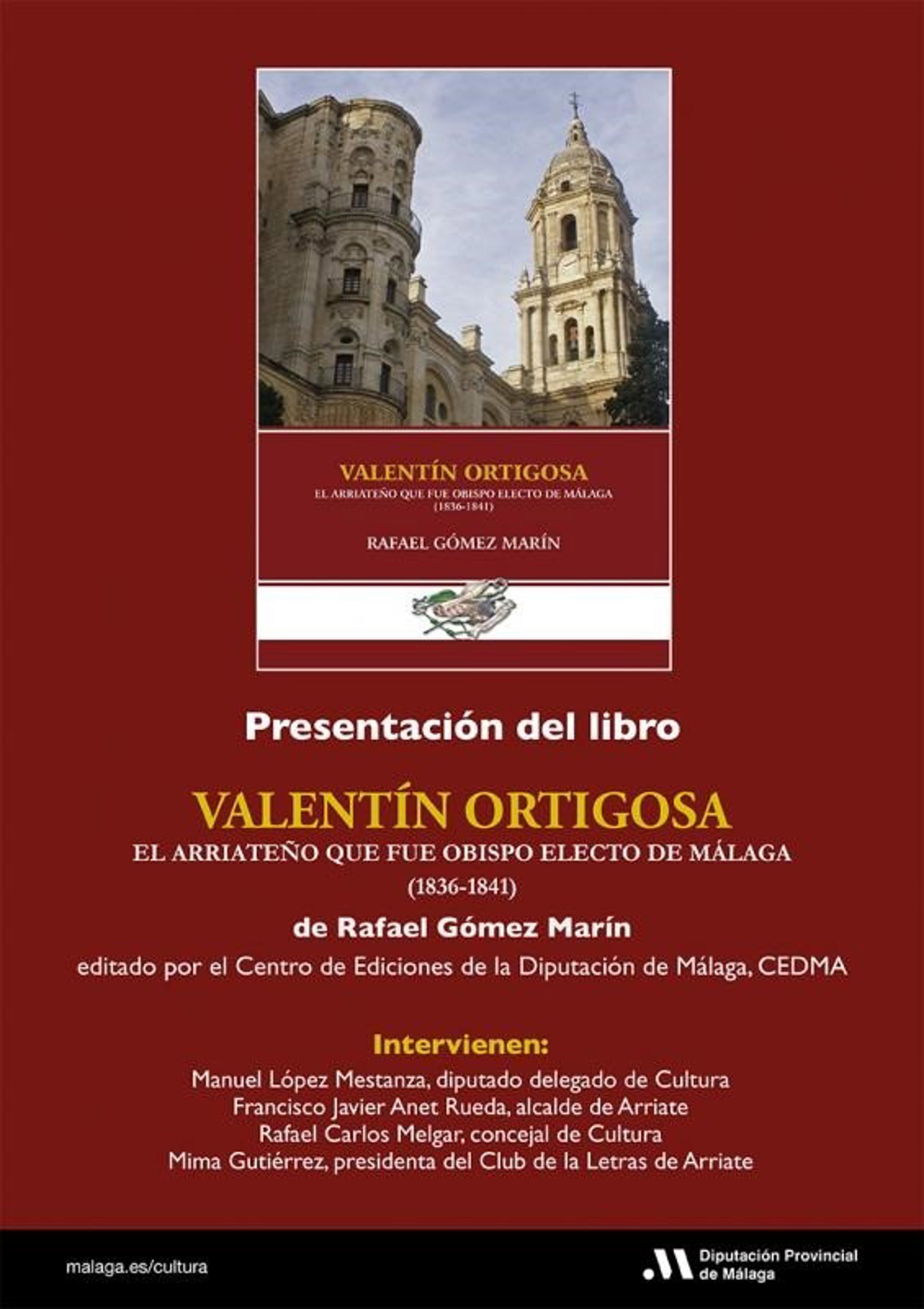 La Diputación de Málaga rinde homenaje al arriateño Valentín Ortigosa que fue obispo de la provincia entre los años 1836-1841, con un libro de Rafael Gómez Marín, editado por el Centro de Ediciones de la institución provincial (Cedma).