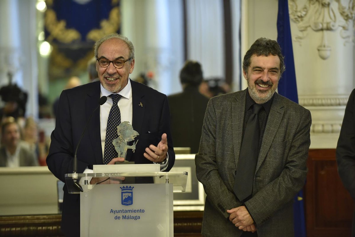 El acto, que se ha convertido en un homenaje de la profesión a los maestros 'Elgar' y 'Forges', ha contado también con la asistencia del presidente de la Asociación de la Prensa de Málaga, Rafael Sala; el presidente de la Fundación Manuel Alcántara, Antonio Pedraza; el director de Área de Málaga de Caixa Bank, Amador Carmona; y el director de Comunicación y Relaciones Institucionales de Samsung España, Francisco Hortigüela.