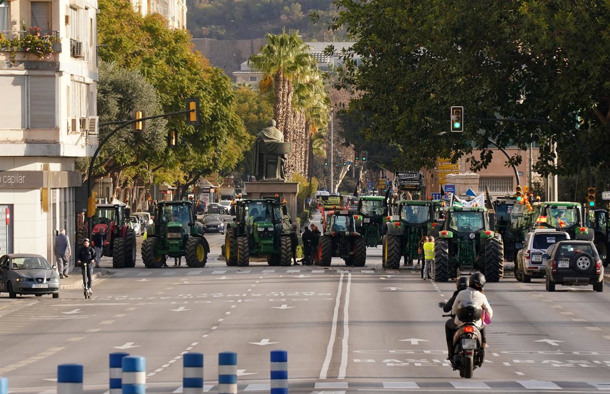 Cientos de agricultores y ganaderos cortan las principales calles de acceso a la capital malagueña. - Álex Zea - Europa Press
