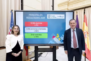 El Ayuntamiento de Málaga, a través del Instituto Municipal para la Formación y el Empleo (IMFE), ha formado a un total de 18.500 personas a través de los distintos cursos e itinerarios integrales para la inserción laboral y ha posibilitado más de 1.100 contrataciones de personas demandantes de empleo a lo largo del año 2025.