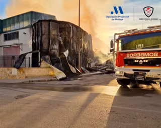 Imagen del incendio en el polígono industrial de Cajiz - DIPUTACIÓN DE MÁLAGA