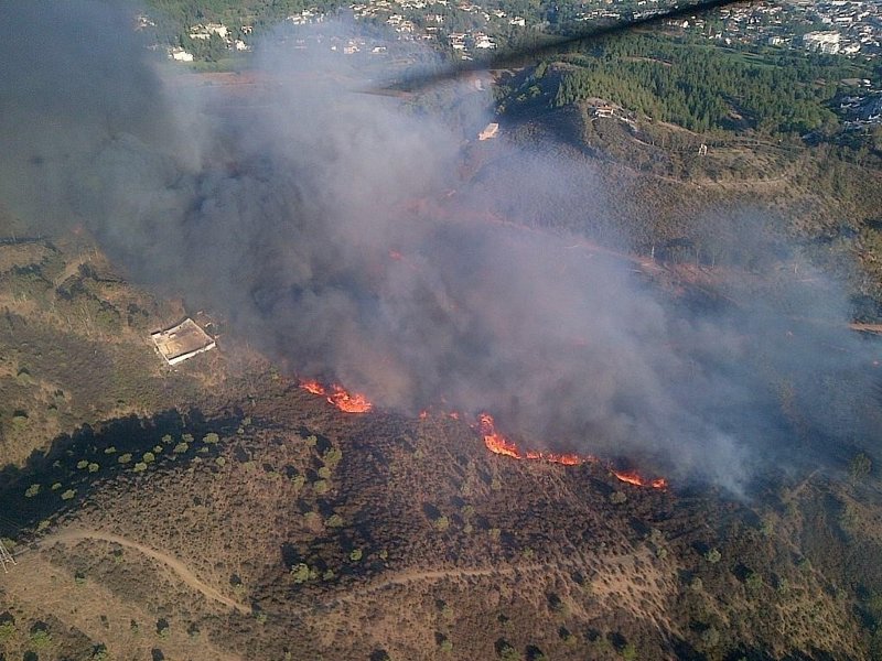 Este incendio, el tercero que se declara en Mijas en menos de un mes, se originó en el paraje El Chaparral sobre las 19.20 horas de este viernes y quedó estabilizado en torno a las 23.30 horas. De forma preventiva fueron desalojados unos 150 vecinos.