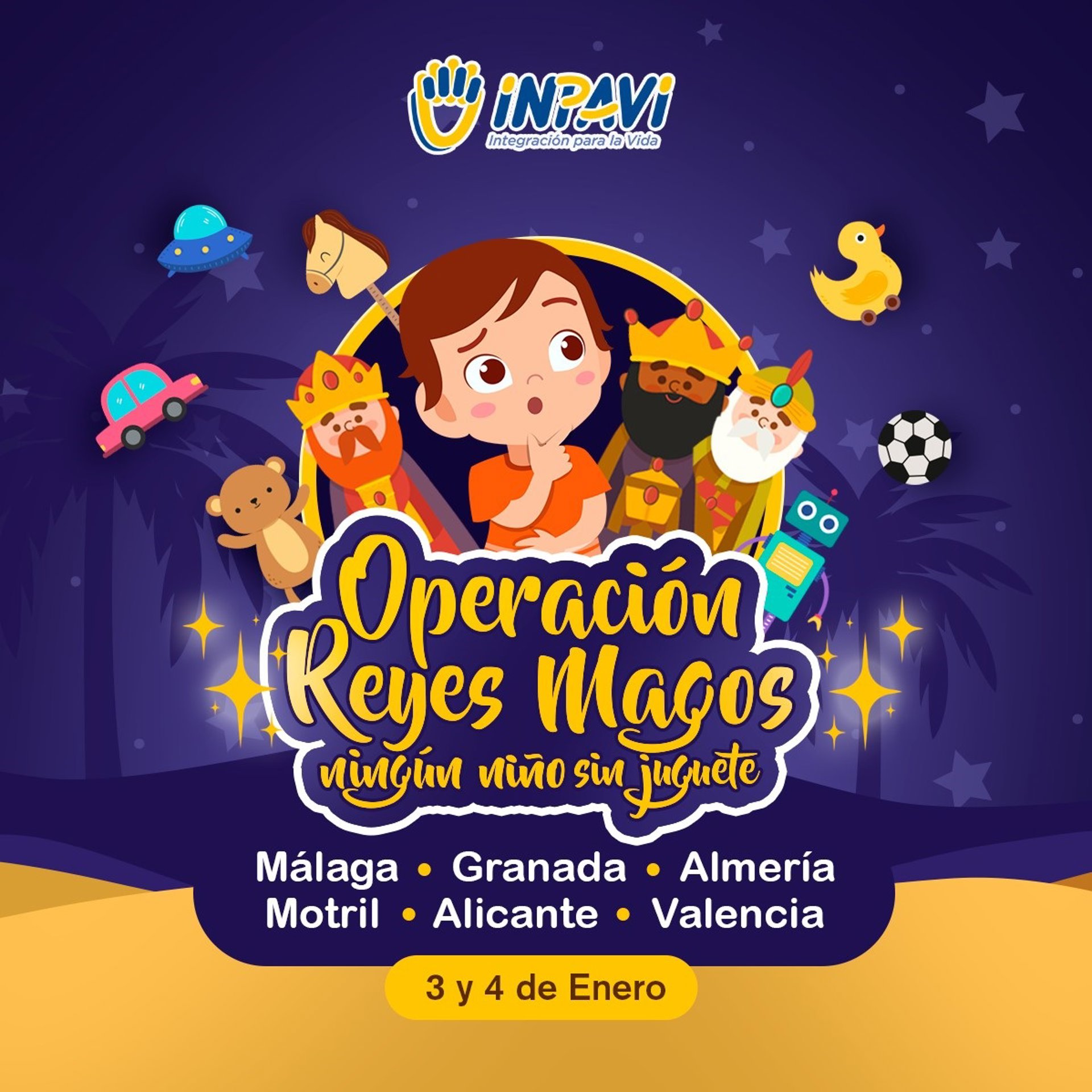 La ONG Integración para la Vida (Inpavi) finaliza este año con su campaña 'Operación Reyes Magos: Ningún niño sin juguete', con la que repartirá este miércoles 4 de enero en Málaga unos 900 juguetes nuevos a un total de 500 menores en riesgo de exclusión social y/o pobreza. Además, se hará entrega de 500 mochilas y meriendas.