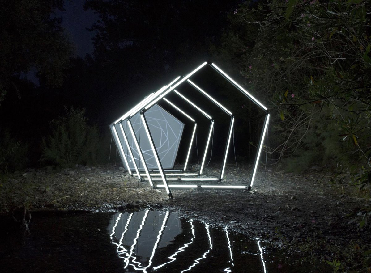 La obra, que se define como un pasillo formado por cinco tramos delimitados por cinco pentágonos de luz LED, fue exhibida de forma temporal en el espacio natural del Valle del Genal en Genalguacil (Málaga).