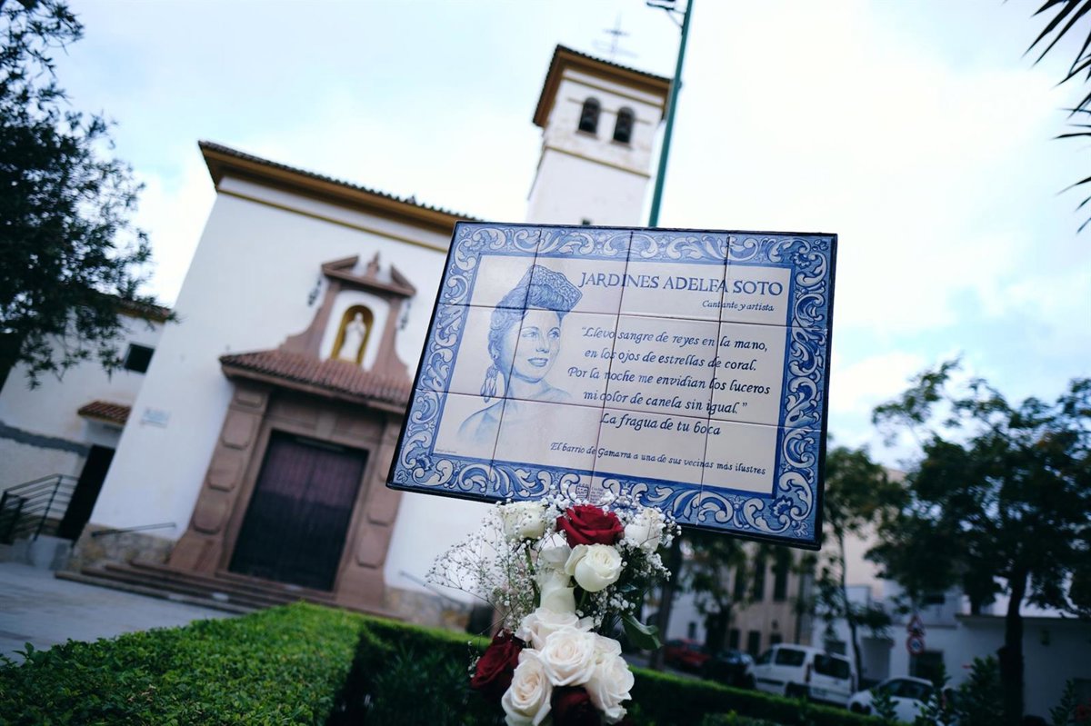 La nueva placa dedicada a Adelfa Soto (Valencia, 27 de enero de 1937 - Málaga, 4 de octubre de 2025) ya está instalada en los jardines que llevan el nombre de la artista en la plaza Prudencio Jiménez, junto a la iglesia de La Purísima, en el barrio de Gamarra (distrito Bailén-Miraflores).