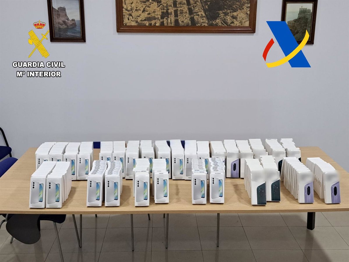 La Guardia Civil ha intervenido un total de 300 teléfonos móviles que eran transportados de forma oculta en el maletero de un vehículo durante una inspección realizada en el recinto portuario de Melilla, coincidiendo con el desembarque de un buque procedente de Málaga.