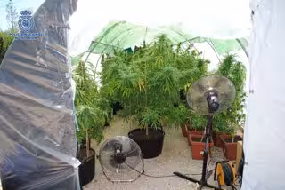 El cultivo, que se encontraba en el exterior de la vivienda cubierto con toldos a modo de invernadero, estaba acondicionado con extractores, lámparas, ventiladores, entre otros útiles.