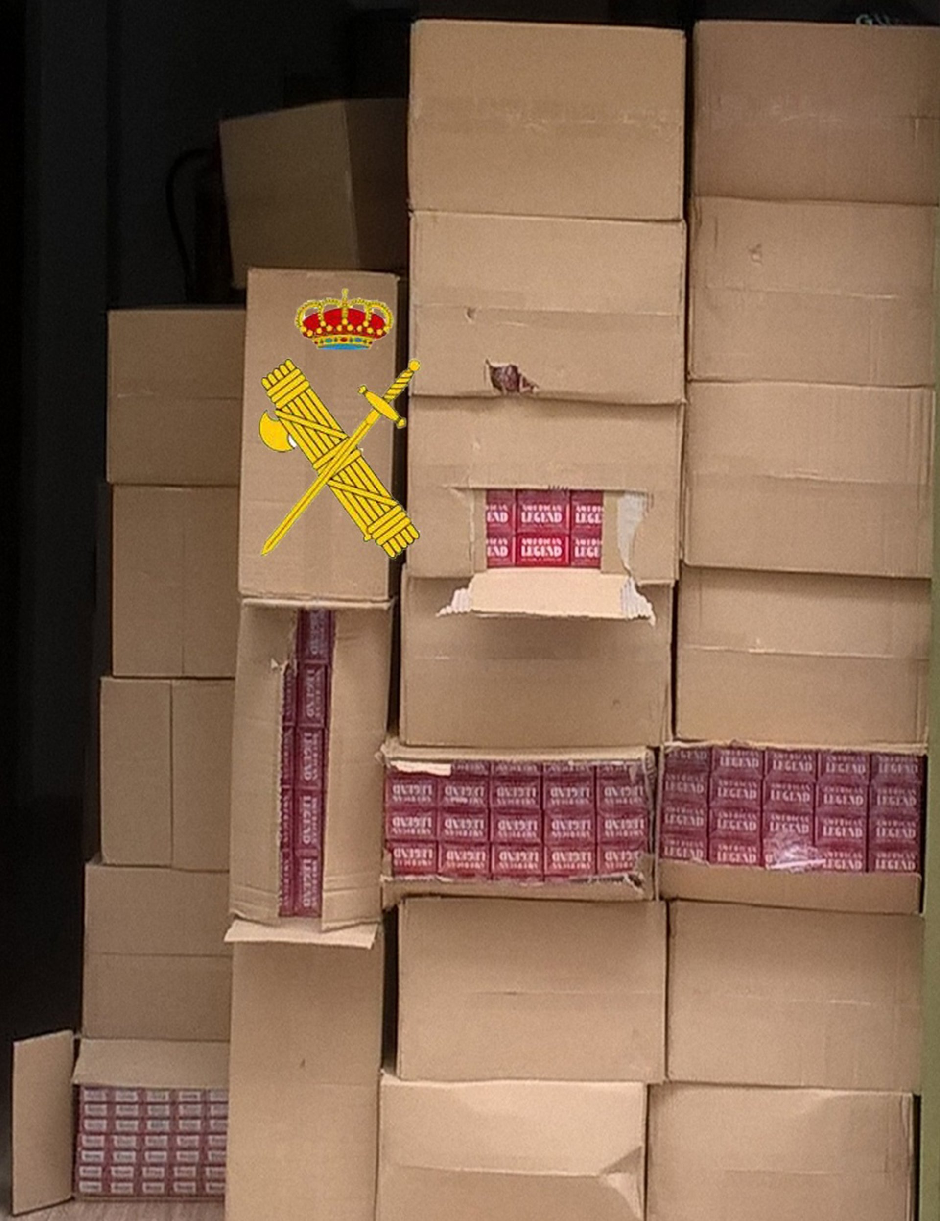 Efectivos del Puesto Principal de la Guardia Civil de Cártama (Málaga) en colaboración con agentes del Seprona del municipio malagueño de Coín han detenido a una persona como presunto autor de un delito a la Ley de Reprensión del Contrabando. Además, han intervenido un total de 17.500 cajetillas de tabaco.