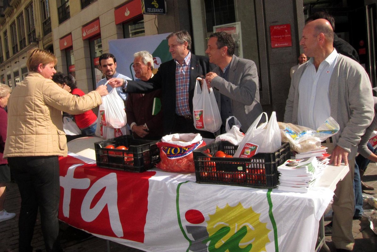 Los dirigentes de la coalición, que han estado acompañados por el diputado nacional Alberto Garzón y por responsables de las asociaciones ganaderas y agrícolas COAG y UPA en Málaga en el primer acto de campaña, en el que han repartido hortalizas, han advertido de la situación "complicada" que está atravesando el sector debido a la Política Agraria Común (PAC).