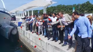 Tras la comparecencia, Maíllo y los candidatos de Izquierda Unida a los municipios mayores de 40.000 habitantes de Málaga han lanzado claveles rojos al mar en recuerdo de los inmigrantes desaparecidos.