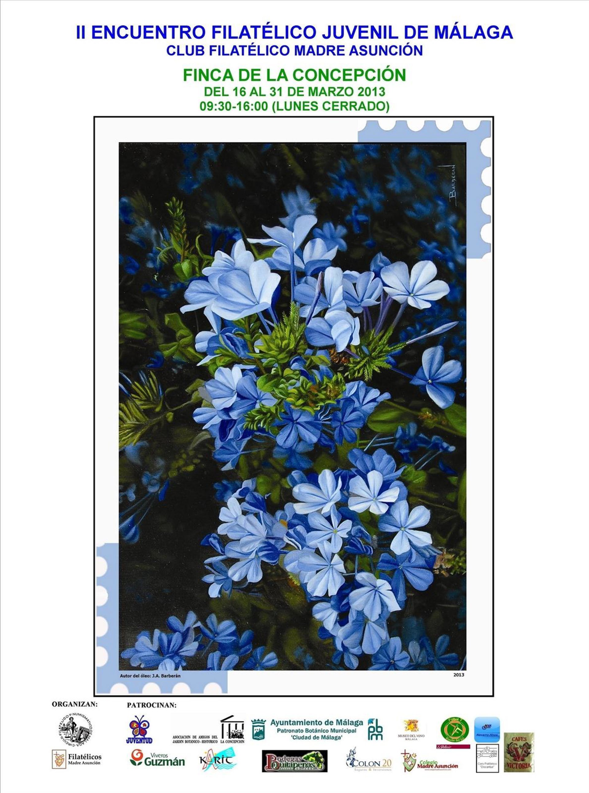 La exposición ha sido posible a través de un trabajo de cerca de cinco meses, tiempo durante el cual se ha obtenido un cartel al óleo cedido por el pintor malagueño Barberán con una flor típica de la capital, la Celestina o Plumbago auriculata.