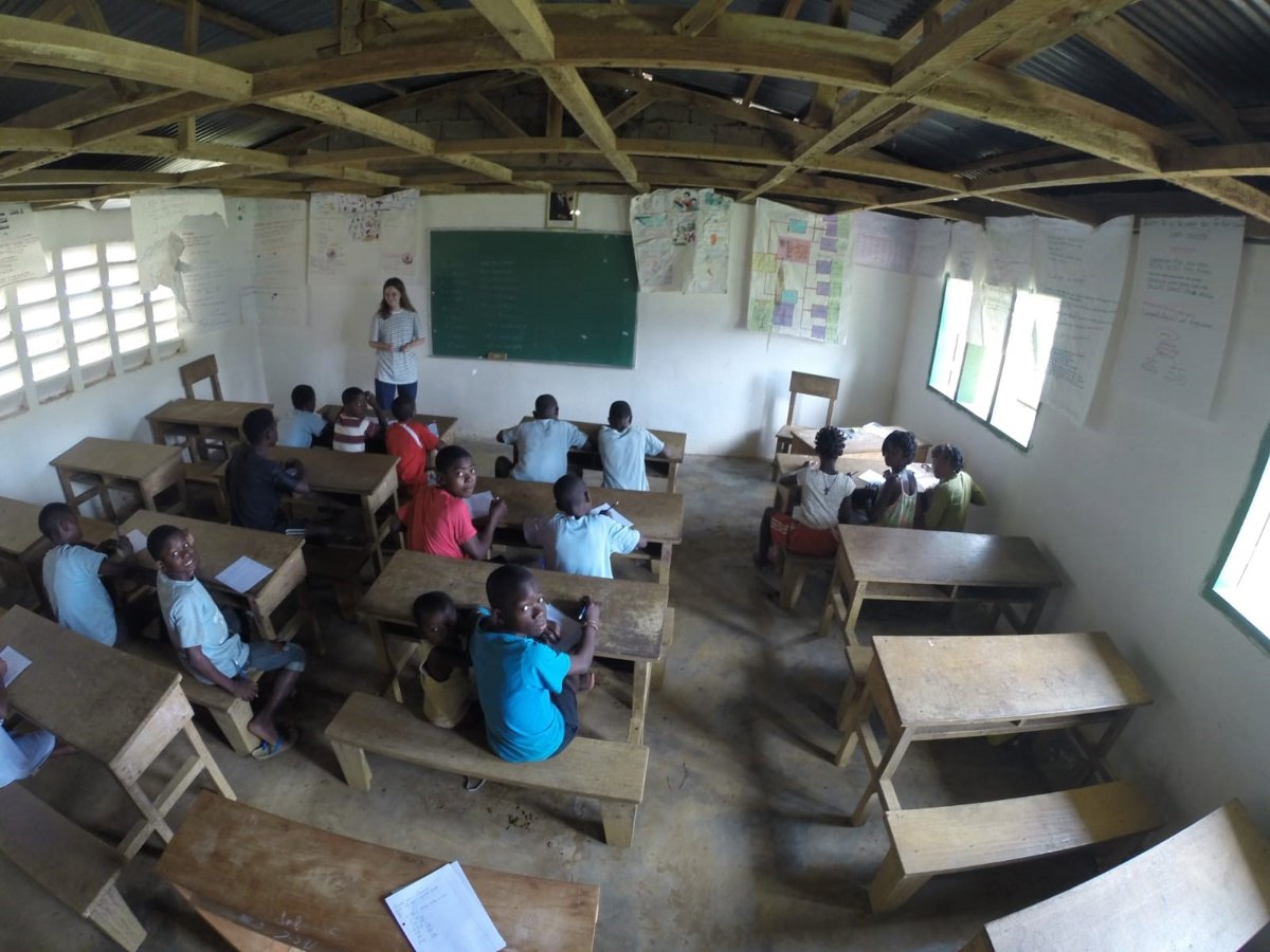 Una voluntaria da clases a niños dentro del proyecto EducaGuinea - CEDIDA