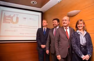 Al acto de presentación han acudido el alcalde de Málaga, Francisco de la Torre; el director adjunto de la representación de la CE en España, Juergen Foecking, y el jefe de la oficina del Grupo Banco Europeo de Inversiones en España, Alberto Barragán.
