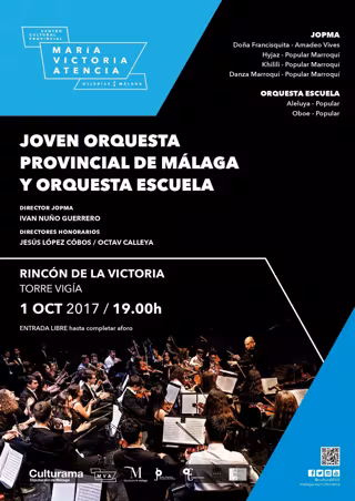 La Joven Orquesta Provincial de Málaga (Jopma) y la Orquesta Escuela (OE) ofrecerán este domingo, 1 de octubre a las 19.00 horas, un concierto en la Torre Vigía del municipio malagueño de Rincón de la Victoria, en la que los asistentes podrán disfrutar de un entorno privilegiado y poner en valor la importancia de este patrimonio histórico en el litoral malagueño. La entrada es libre hasta completar el aforo.