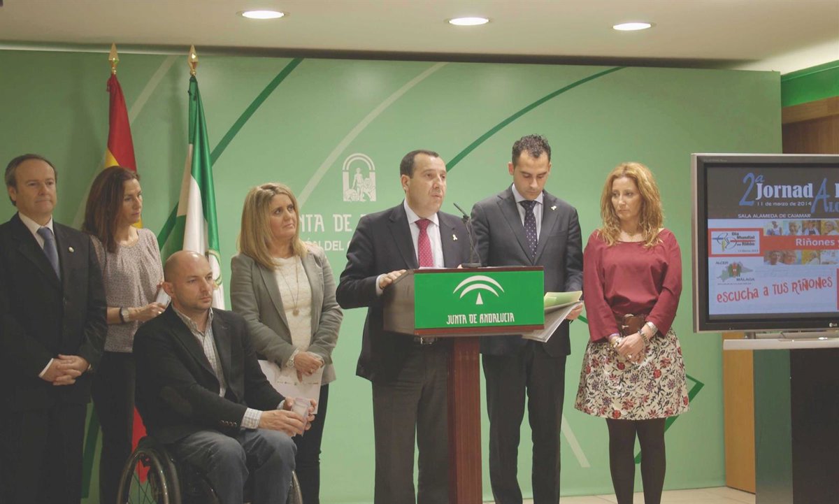Ruiz Espejo ha presentado los actos con motivo del Día Mundial del Riñón, el próximo 13 de marzo, bajo el lema 'Los riñones envejecen, igual que tú', junto a la diputada provincial de Centros de Atención Especializada, Emiliani Jiménez; el concejal de Movilidad y Accesibilidad del Ayuntamiento de Málaga, Raúl López; la presidenta de Alcer-Málaga, Josefa Gómez, y el expresidente del Colegio Oficial de Farmacéuticos, Javier Tudela.