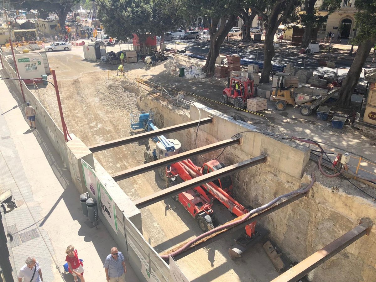 El lateral norte de la Alameda Principal de Málaga, afectado por las obras de construcción del tramo del metro de la capital Guadalmedina-Atarazanas, se reabrirá parcialmente durante la segunda quincena de agosto.