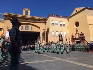 Pasadas las 12.00 horas y tras recorrer algunas de las calles del centro histórico de Málaga, los legionarios han llegado a la Casa Hermandad de la Cofradía del Cristo de la Buena Muerte y Ánimas y Nuestra Señora de la Soledad, en el barrio de El Perchel.