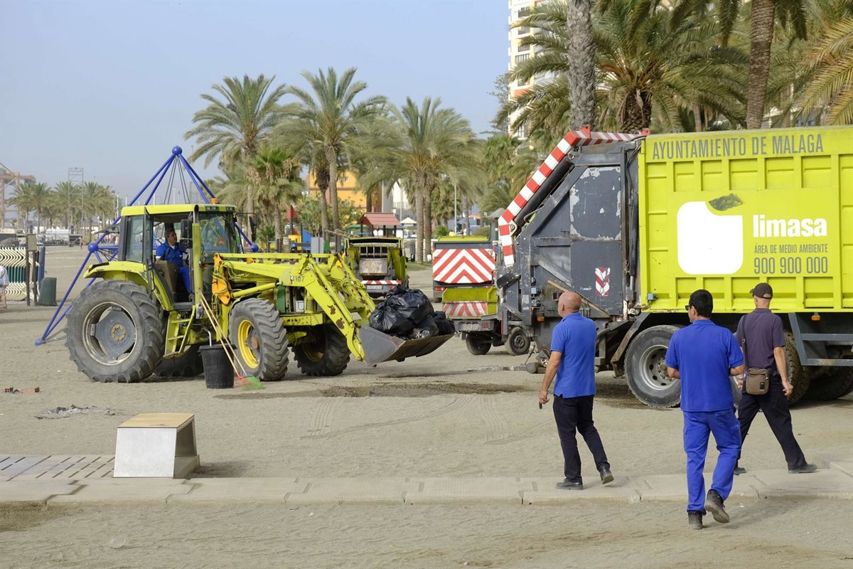 En el dispositivo de Limasa que ha actuado este viernes en las playas ha intervenido tanto el servicio ordinario dedicado a su limpieza en temporada alta como los medios especiales movilizados para su refuerzo, según ha informado en un comunicado el Ayuntamiento de Málaga.