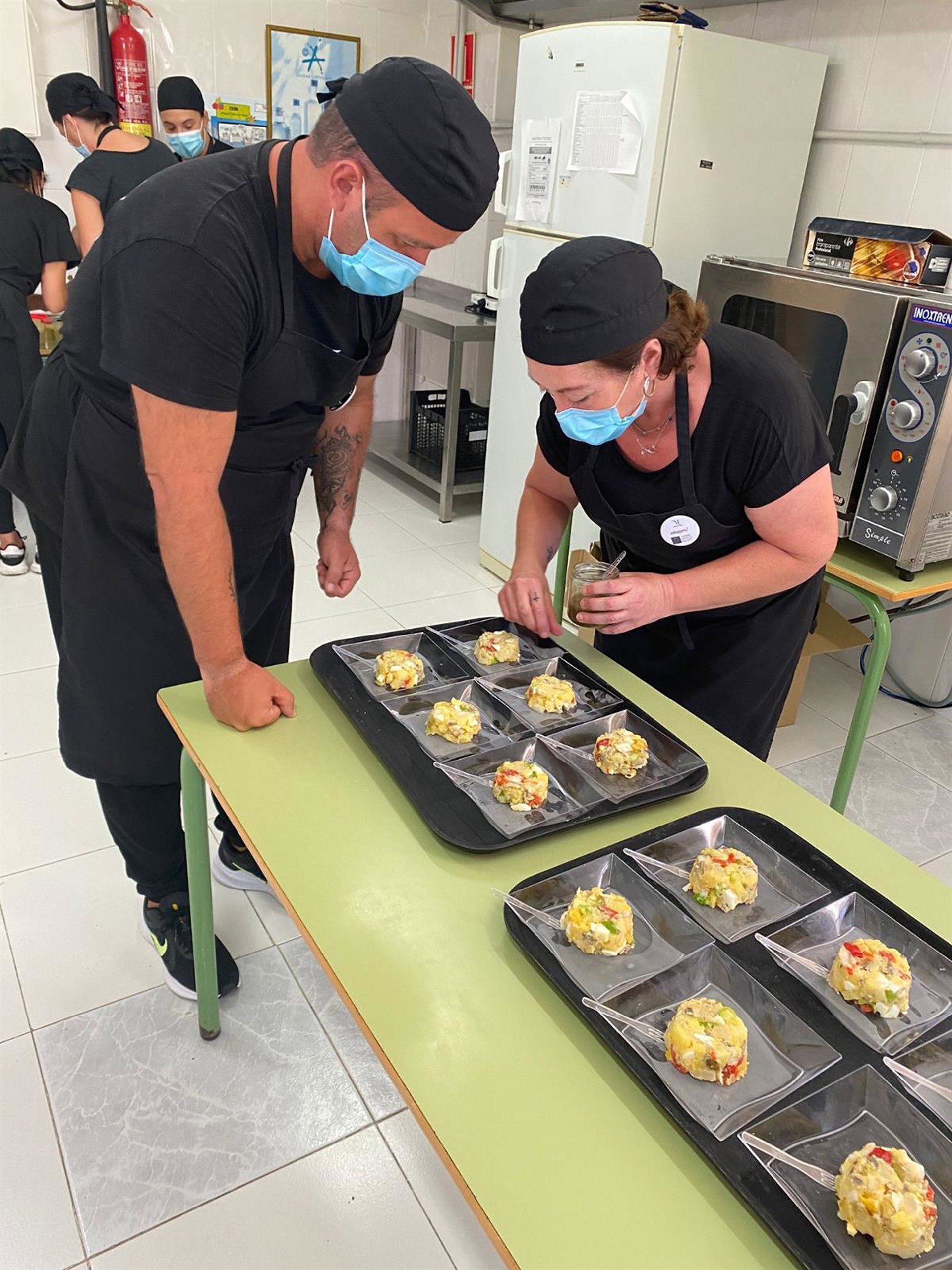 Junto a los 14 alumnos participantes en el curso, Maldonado ha compartido la elaboración de algunos de los platos correspondientes a la clase práctica, como han sido un salmorejo de aguacate; una ensalada 'cateta', típica de la zona; calabaza con guarnición de morcilla; gacha malagueña con crema de melocotón y tiramisú de mango. Todos los productos con los que se han elaborado los platos cuentan con el sello de Sabor a Málaga.
