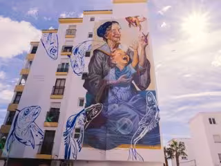 Un total de 64 murales artísticos decoran las fachadas de edificios de diferentes barrios y zonas, dándoles vida y convirtiéndolos en un atractivo más. Uno de ellos, titulado 'Día de Pesca', es de los murales verticales más altos de España. Ocupa casi 1.000 metros cuadrados de superficie y está realizado sobre la fachada de seis bloques de viviendas de la barriada Isabel Simón.