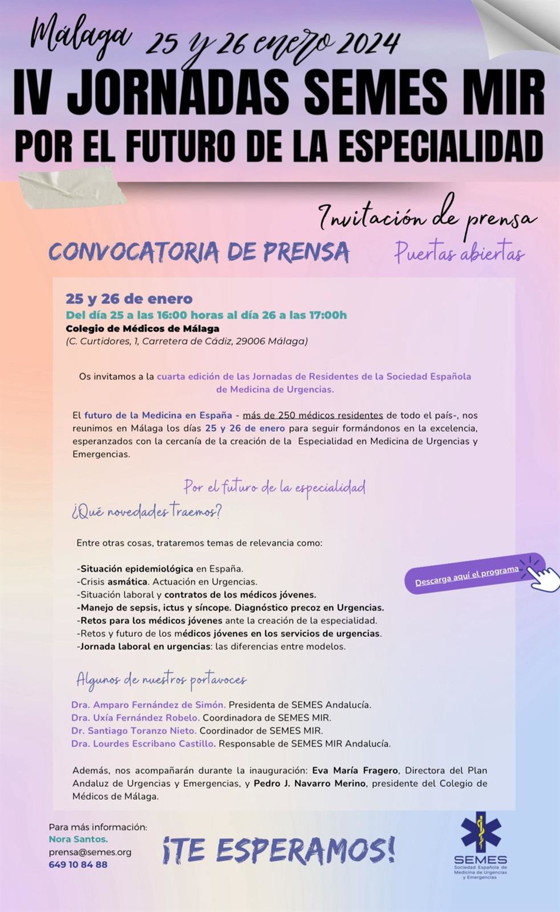Cartel informativo de las IV Jornadas Semes MIR. - COLEGIO DE MÉDICOS DE MÁLAGA