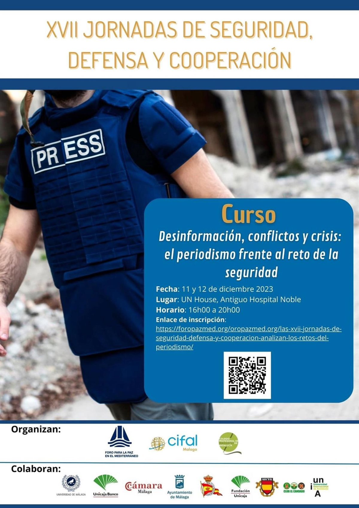 'Desinformación, conflictos y crisis: el periodismo frente al reto de la seguridad'. Este es el título de las XVII Jornadas de Seguridad, Defensa y Cooperación del Foro para la Paz en el Mediterráneo que este año se celebrarán en la Casa de las Naciones Unidas en Málaga (antiguo Hospital Noble) los días 11 y 12 de diciembre.