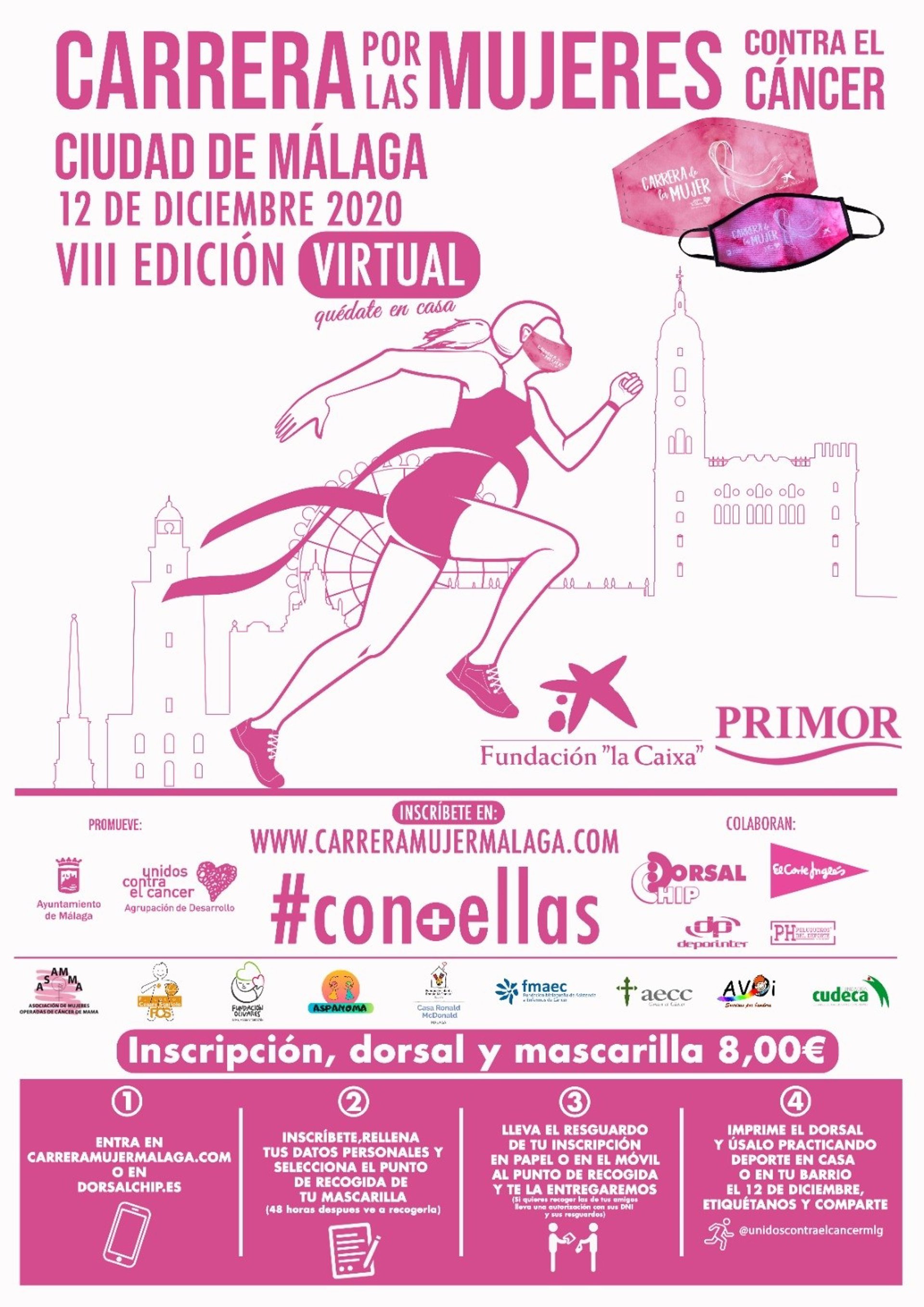 La VIII Carrera Mujeres Contra el Cáncer, 'Ciudad de Málaga', se celebrará el sábado, 12 de diciembre, por primera vez en formato virtual debido a la pandemia. Esta es una iniciativa del Área de Derechos Sociales del Ayuntamiento de Málaga, con la colaboración de la Fundación "La Caixa" y Primor, y que destinará todos los beneficios recaudados a la Agrupación de Desarrollo 'Unidos contra el Cáncer'.