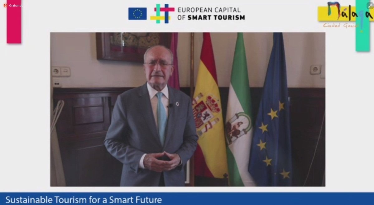 El alcalde de Málaga, Francisco de la Torre, y la concejala de Turismo, Promoción de la Ciudad y Captación de Inversiones, Rosa Sánchez, han participado este lunes en una conferencia online e internacional de capitales europeas de turismo inteligente.
