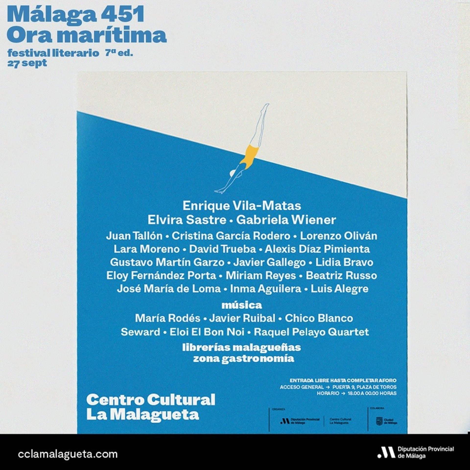 El Centro Cultural La Malagueta, dependiente de la Diputación de Málaga, celebra este viernes, 27 de septiembre, la séptima edición del festival literario 'Málaga 451: Ora marítima'.
