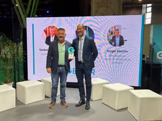 El presidente de la Mancomunidad de Municipios de la Costa del Sol Axarquía, Jorge Martín, ha recogido un galardón de Gecor en reconocimiento por el compromiso de la institución comarcal con el turismo inteligente. - MANCOMUNIDAD AXARQUÍA