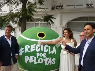 La Mancomunidad de Municipios de la Costa del Sol Occidental, Ecovidrio, el Ayuntamiento de Marbella (Málaga) y Seniors Master Cup han presentado este jueves los contenedores de la campaña #ReciclaPorPelotas que se instalarán en la Costa del Sol para fomentar el reciclaje de vidrio aunando el deporte y la sostenibilidad.