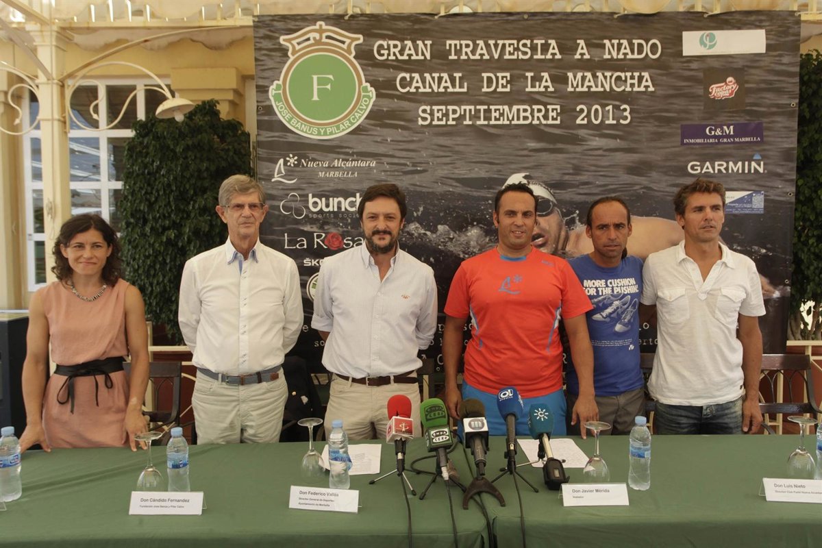El director de Deportes del Ayuntamiento de Marbella, Federico Vallés, ha asistido este lunes como muestra de apoyo, a la presentación de la Travesía a Nado del Canal de la Mancha que va a realizar en septiembre el paratriatleta marbellí Javier Mérida.