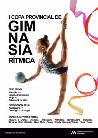 La Diputación de Málaga organiza la primera Copa Provincial de Gimnasia Rítmica, que se celebrará de marzo a mayo en Marbella, Nerja y Antequera con la participación de gimnastas de estos tres municipios y de otros 13: Alhaurín el Grande, Alozaina, Archidona, Benalmádena, Campillos, Cártama, Coín, Mijas, Pizarra, Ronda, Sierra de Yeguas, Teba y Torrox.