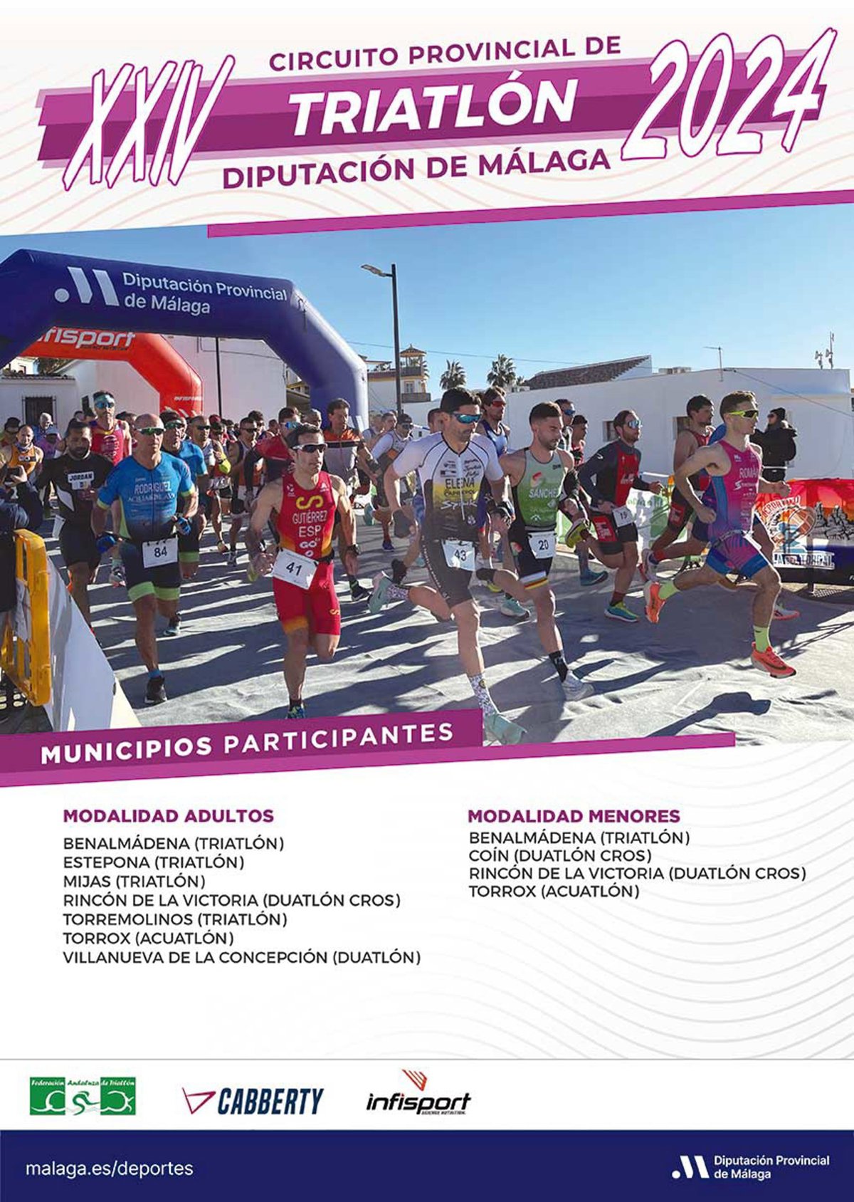 La nueva temporada 2024 contará con 18 pruebas, seis más que en 2023. Habrá once pruebas de categorías superiores y siete de categorías inferiores, y la primera cita será el 23 de marzo en Rincón de la Victoria, donde se disputará el duatlón cros de categorías superiores e inferiores. En cuanto a novedades, destaca la incorporación del Triatlón de Mijas en el bloque de adultos.