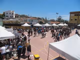 Una quincena de jaimas acogen en la pista deportiva del instituto más de 70 talleres, exposiciones, charlas informativas, teatro, conferencias y otras actividades. Asimismo, la Fundación Descubre está presente a través de la participación de uno de sus patronos, el Centro de Ciencia Principia.