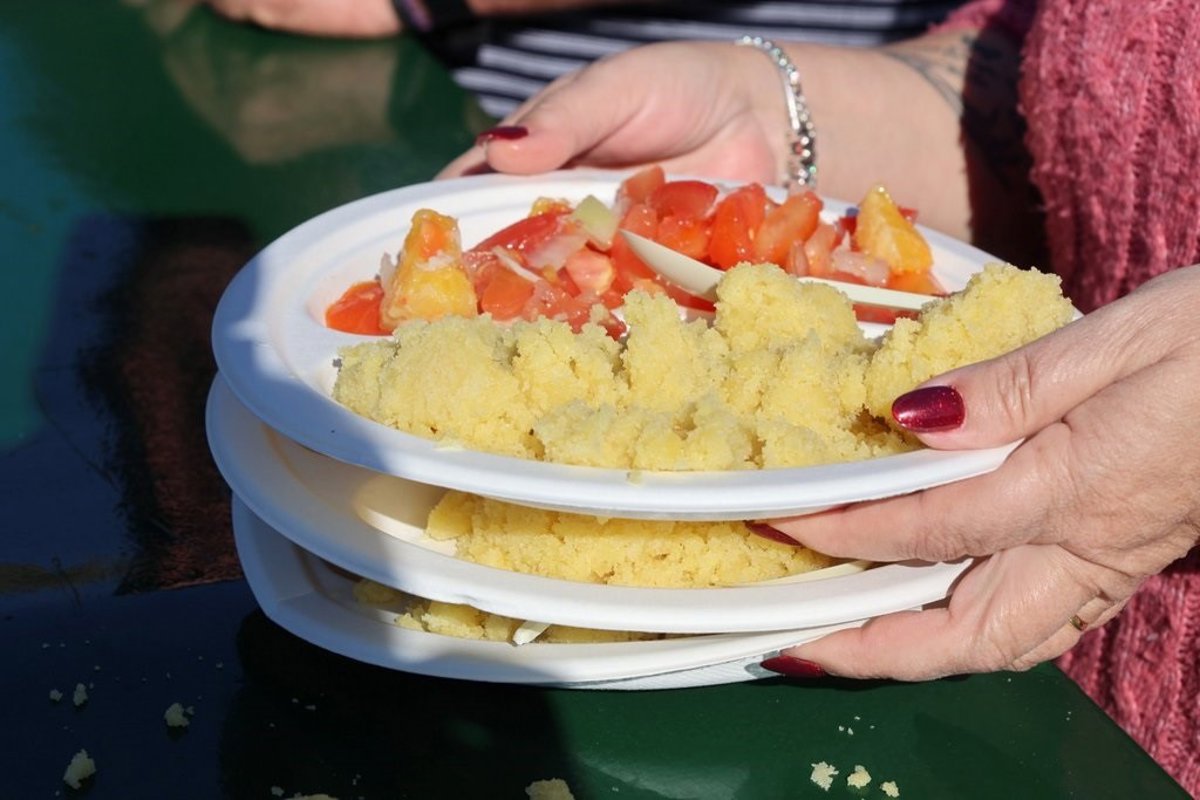 Para elaborar y repartir gratuitamente este plato típico de Torrox, como cada domingo anterior a la Navidad, serán necesarios 1.750 kilos de harina de sémola de trigo --100 de ellos sin gluten-- y 60 kilos de ajos, más el agua necesaria y unos 650 litros de aceite de oliva en su variedad nevadillo.