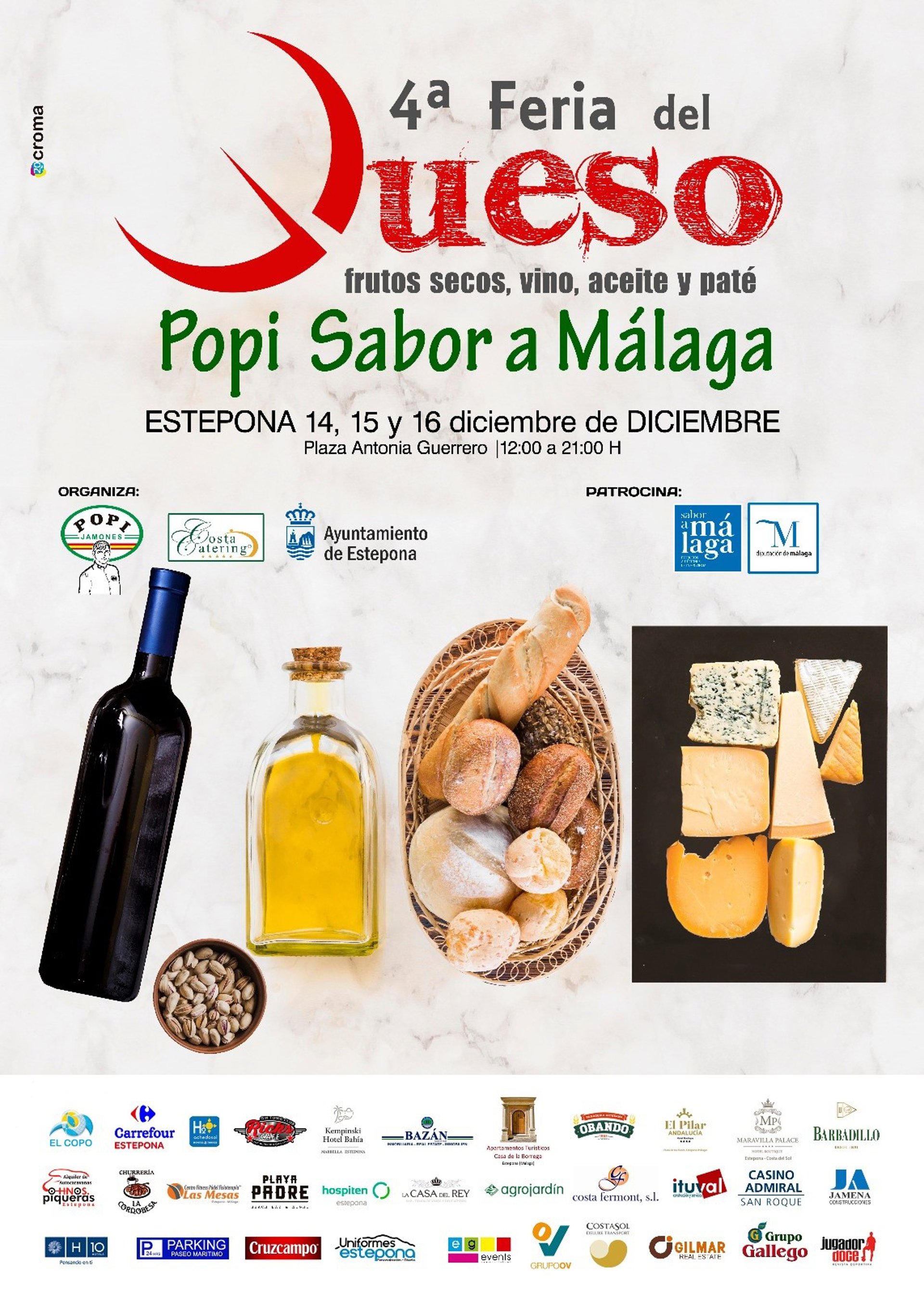 El municipio malagueño de Estepona acogerá en la plaza Antonia Guerrero, del 14 al 16 de diciembre, la IV Feria del Queso 'Popi, Sabor a Málaga', una iniciativa impulsada por el Ayuntamiento de la localidad y el cortador profesional de jamón, José María Téllez 'Popi', que cuenta con la colaboración de Diputación a través de la marca promocional Sabor a Málaga.