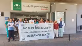 Médicos del Hospital Universitario Virgen de la Victoria de Málaga se han concentrado de nuevo este martes en la entrada del servicio de Urgencias del centro sanitario para denunciar de nuevo las "continuas agresiones" a los profesionales sanitarios tras el último caso ocurrido el viernes.