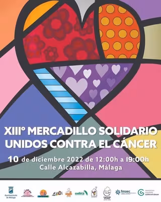 El tradicional mercadillo solidario 'Unidos contra el cáncer' incluirá actividades como un 'flashmob', actuaciones y una pastoral, y tendrá lugar en la calle Alcazabilla de Málaga capital este sábado 10 de diciembre.
