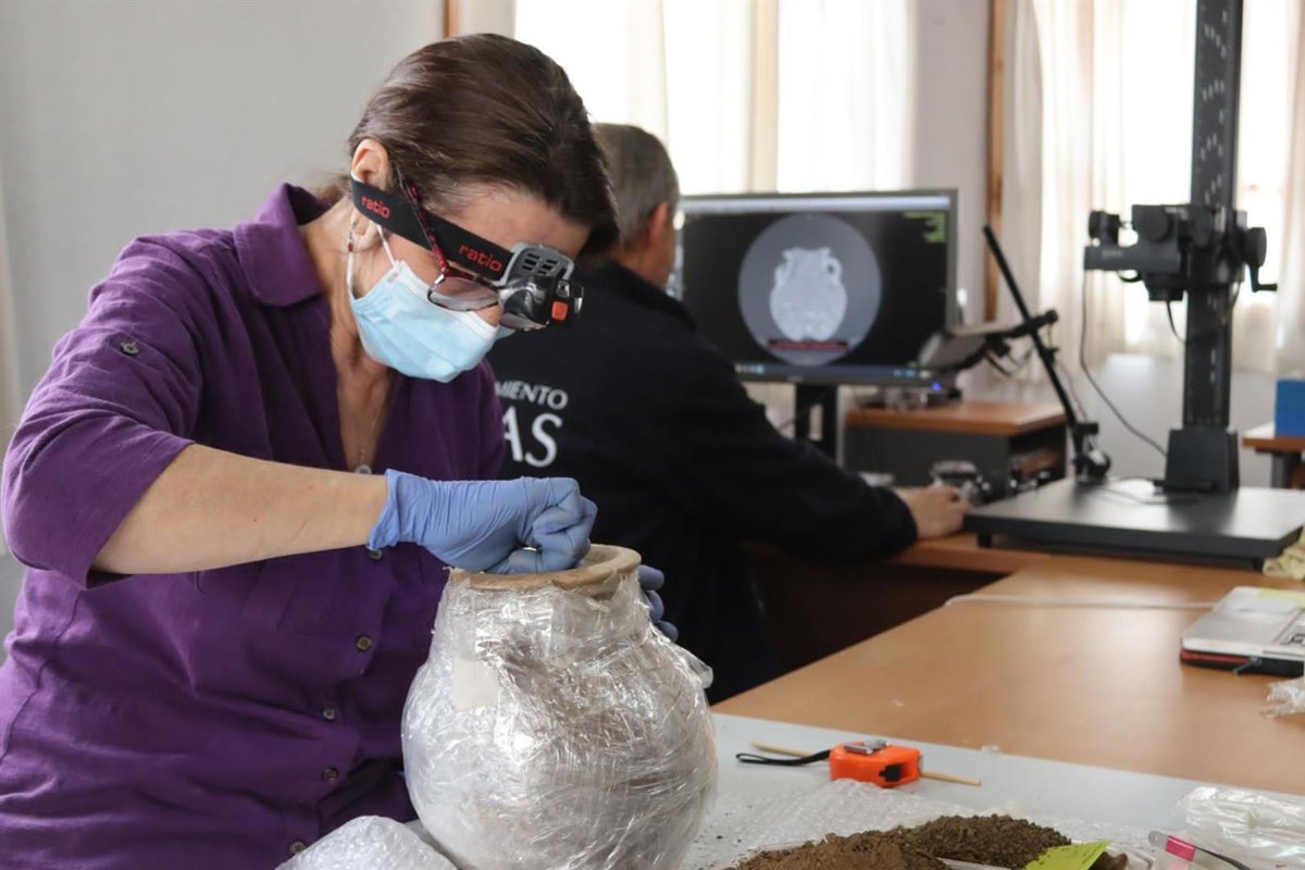 En este sentido, la concejala de Patrimonio Histórico, Laura Moreno, ha detallado que la microexcavación de esta urna funeraria fenicia única en la provincia, "tiene una duración aproximada de tres días entre el trabajo de microexcavación por estratos y la recogida de información y documentación de todos los elementos encontrados" y ha añadido que es un trabajo minucioso "que nos ayudará a saber si el pequeño elemento metálico encontrado fuera de esta urna está relacionada con los elementos metálicos detectados en el TAC que se realizó a la urna hace tan solo unas semanas en la clínica Xanit de Benalmádena en colaboración con la Universidad de Málaga".