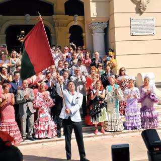 En la rotonda del Marqués de Larios se ha llevado a cabo la izada de la bandera para, tras recorrer las calles de la ciudad, llegar al santuario donde se ha realizado una ofrenda floral a la patrona de Málaga, la Virgen de la Victoria.