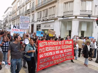 La manifestación estaba encabezada por una gran pancarta, en la que se podía leer 'Nuestro resultado no es influir en el resultado de las elecciones, sino fomentar un voto más reflexivo. Seguiremos más allá del día 22 hasta conseguir una democracia de verdad'.